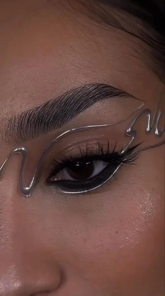 Nas makes, os cílios postiços com formatos inusitados, como os da Courrèges (arredondados) e Miu Miu (alongados no canto externo), marcaram presença.